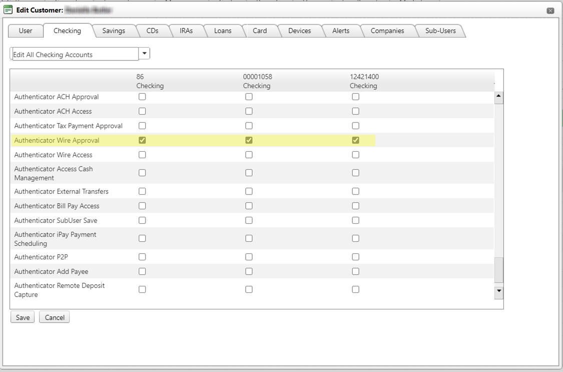 This option, when enabled, prompts the customer to enter a current authenticator code when approving any wire transfer.
