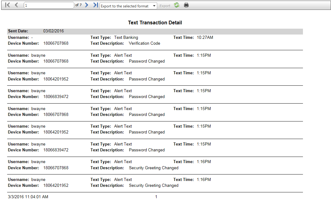 The report offers results that can be viewable in either a summary view or a detail view that is sortable by date, username, and device number and provides additional info on the type and contents of the text alerts.