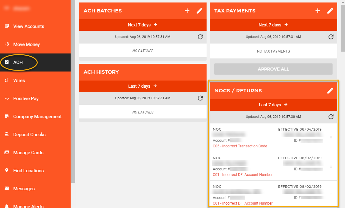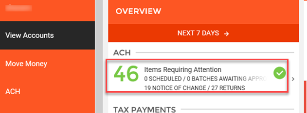 The View Accounts >> Overview > ACH section will display the number of notices that are unworked.