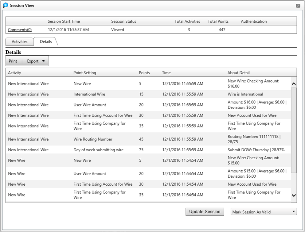 From here, the details can be printed or exported, as well as Updated or Marked Valid/Invalid as previously discussed.