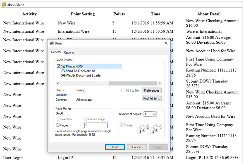 Clicking Print will display a Print Preview and the Print dialog box to choose printing preferences.