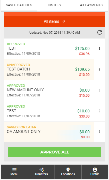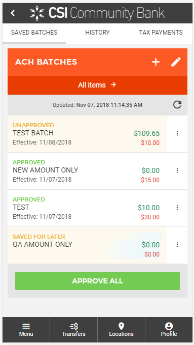 On the review screen, you will be able to see all details of the current ACH batch. This includes: