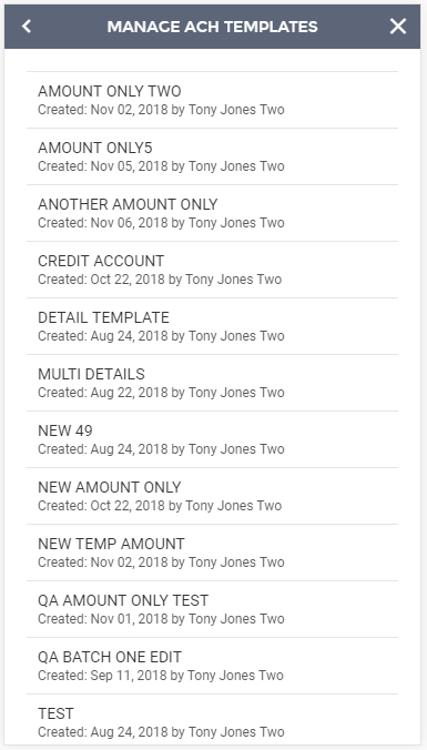 The first step is to select the template you wish to use. These templates can be managed as set up by going to the previous step and selecting "Manage ACH Templates".