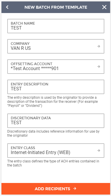 Creating an ACH Batch from a Pre-Existing ACH Template