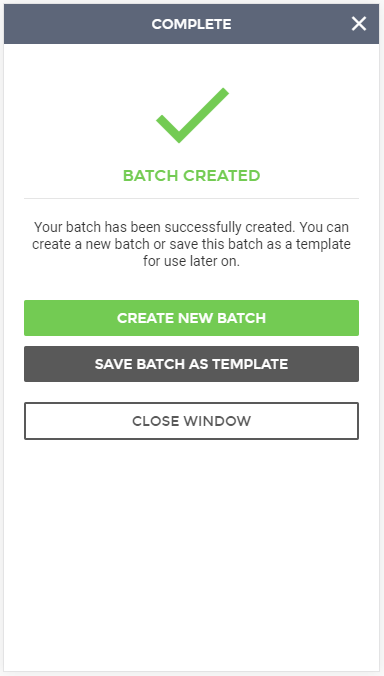 Upon finishing the process, you will see a success message, letting you know that the ACH batch was created properly.