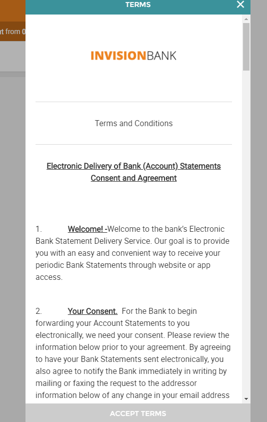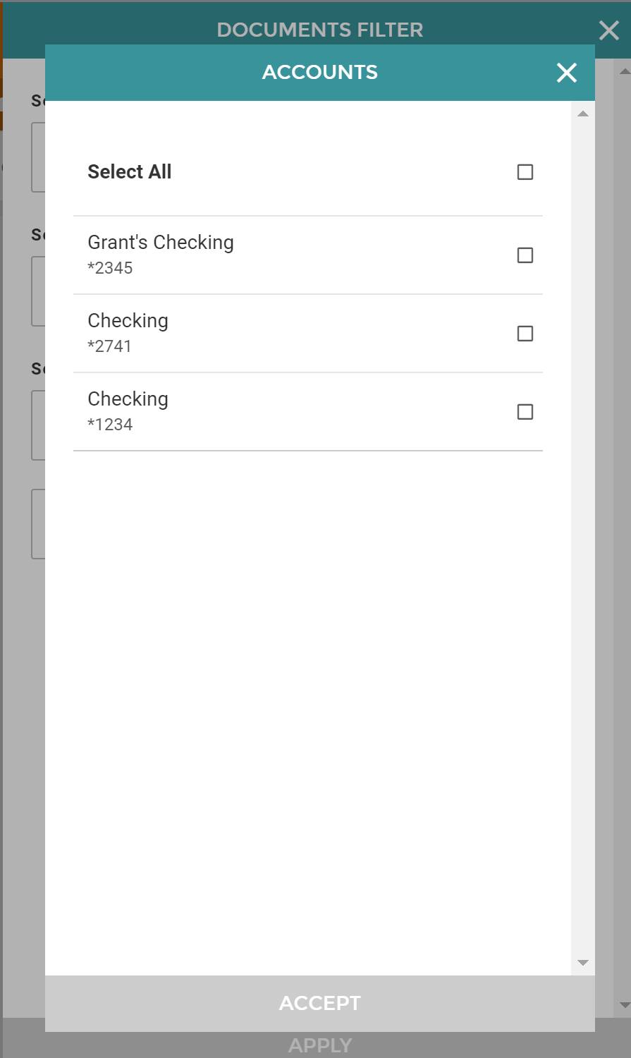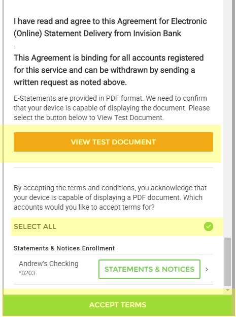 - Select an account, or click Select All if to wish to register all accounts for online statements.