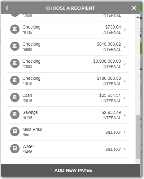 Note: if you need to add a payee, select Add New Payee. You can then add a new Company Payee or Individual Payee.