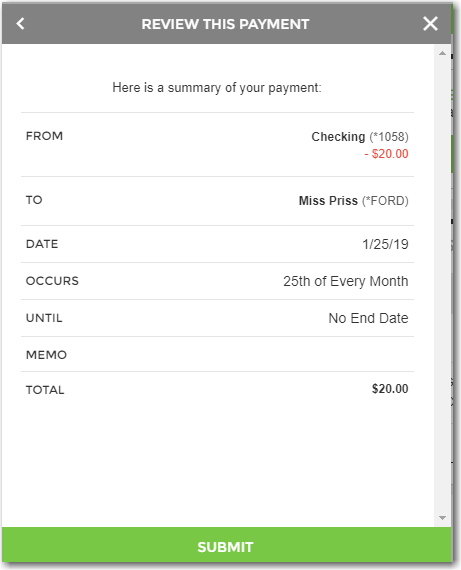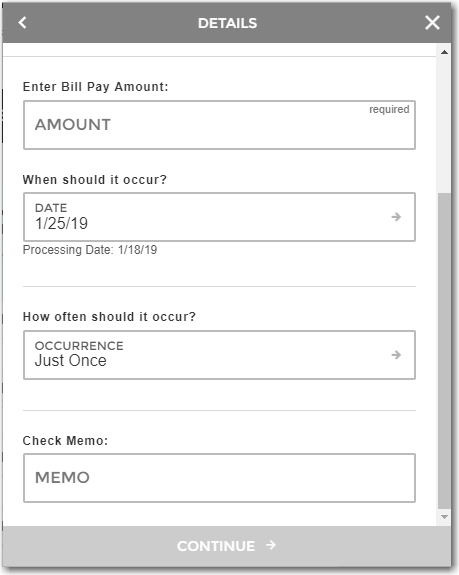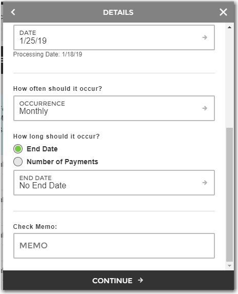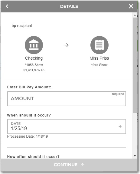 - Enter the amount and the date for this payment. Scroll down for more fields.