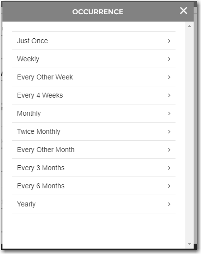 Note: If you select an occurrence that will recur, you will need to specify how it will recur and for how long.