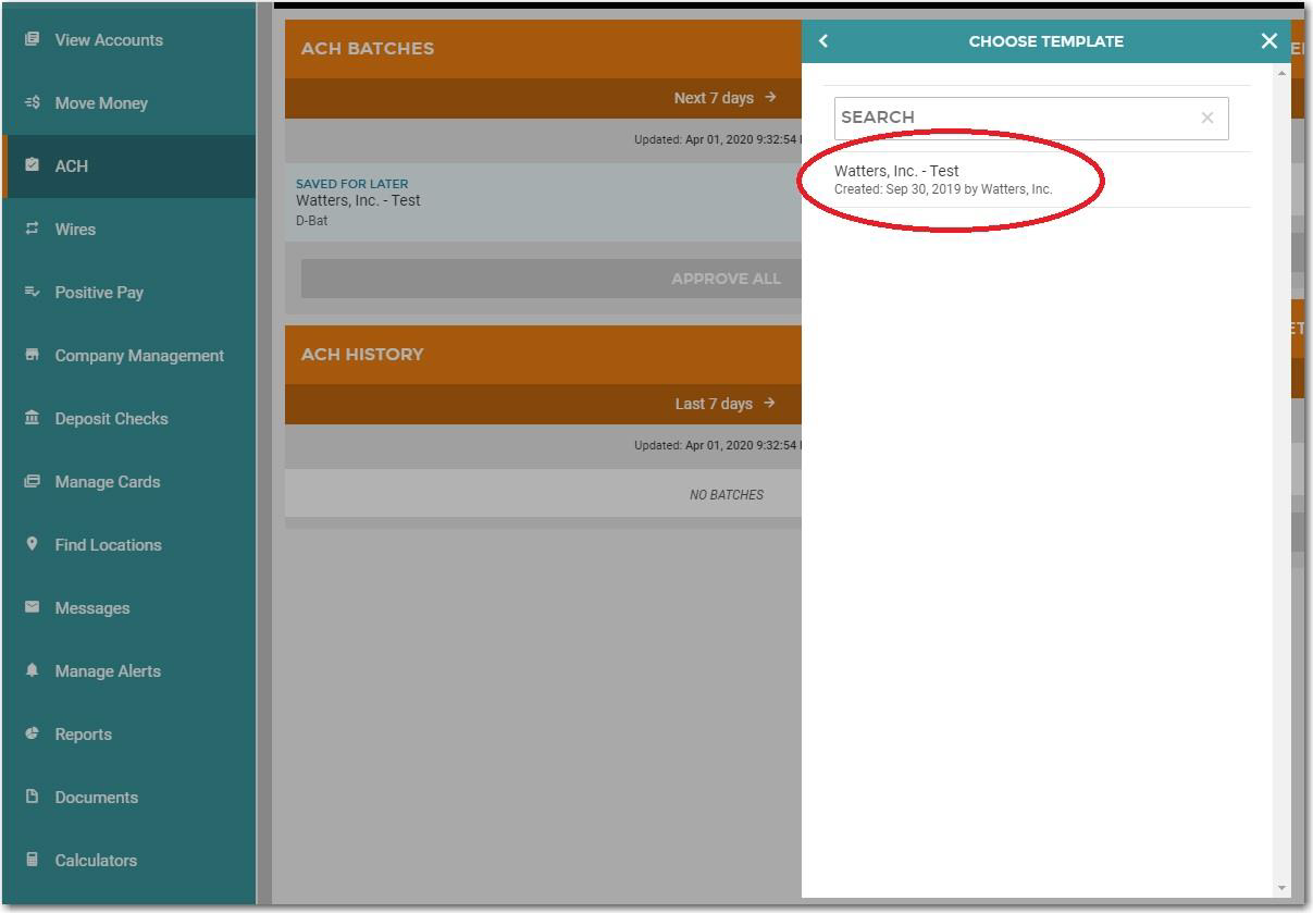 On this screen, you should see a list of your ACH Templates. Choose the one you wish to use.