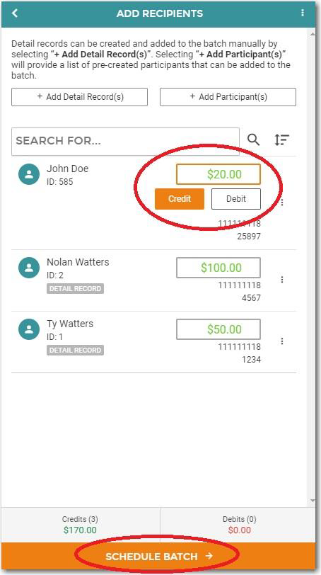 Once all amounts reflect the correct amounts, click Schedule Batch to move to the next step.