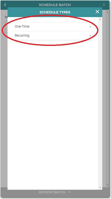 You will be prompted to determine whether you would like the batch to be a one-time batch or recurring.