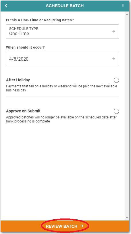 You can also select the effective date and whether you would like the batch to be paid before or after a holiday or weekend if the effective date falls on one of these days.