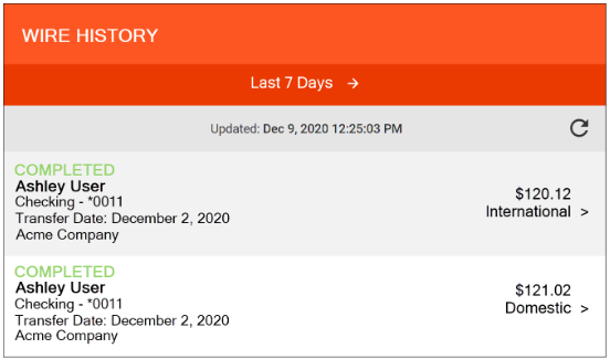 - In the user’s Wire History with the status Completed.