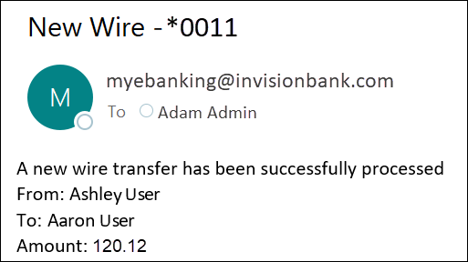 Separate Process Notification Emails will be sent to both the Bank Administrator and the User, notifying them that the wire has been processed.