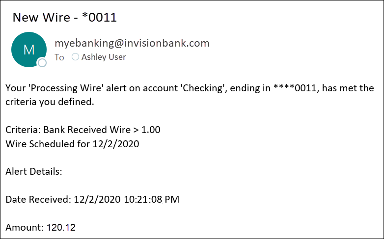 Wire Processing Notification Emails