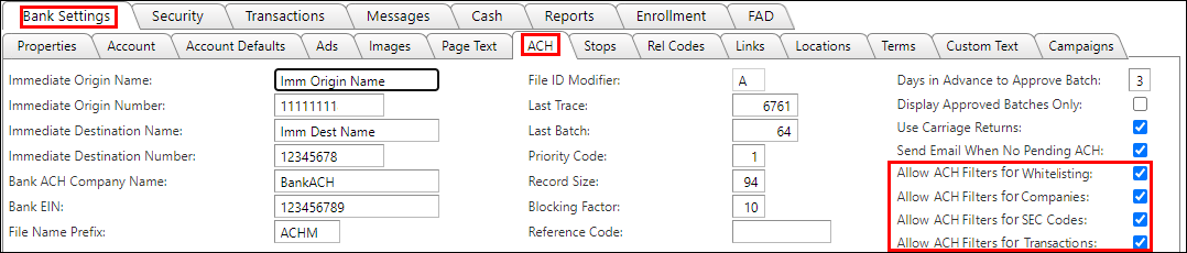 Enable ACH Filter Types For Your Bank