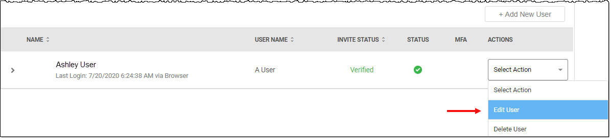 - Click Edit User from the Select Action dropdown.