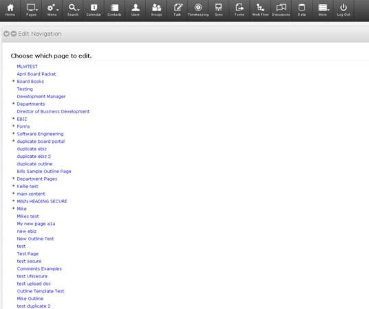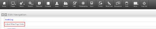 To adjust the order of the main (parent) pages listed on CSI Secure Connect under the Pages icon, click the arrow beside Edit Navigation and select Adjust Main Page Order.