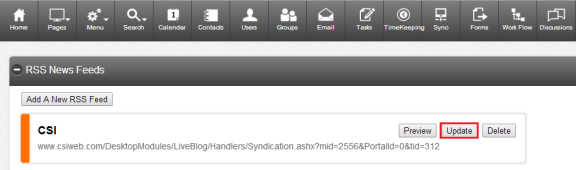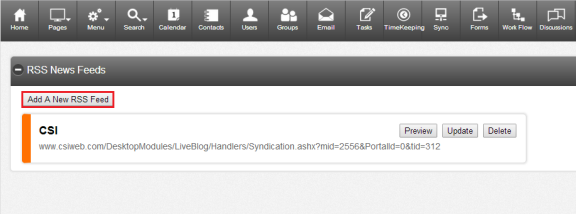 The site administrator can edit the RSS Feeds that appear on the home page.