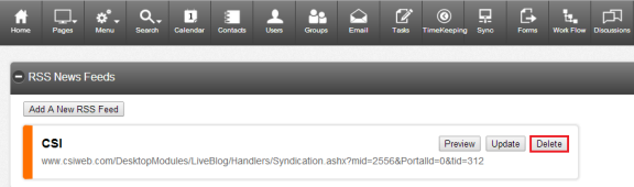 Click on the Delete button that corresponds with the appropriate RSS Feed.