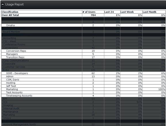 This will generate a report of usage for the last month, last week and last 24 hours for each classification on CSI Secure Connect. This report can be accessed by all CSI Secure Connect users.